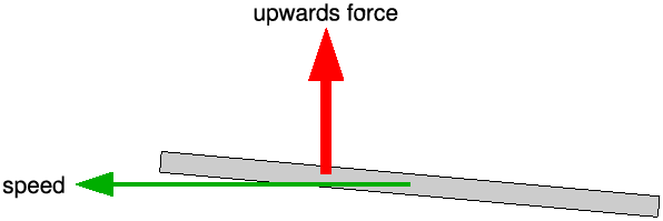 accelerates, rises in the air, banks to the left, falls to the ground,