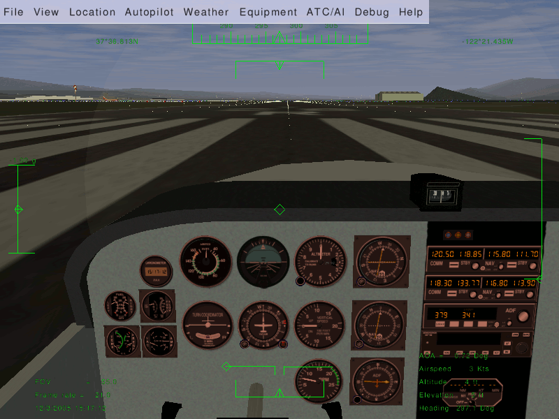 Once the game is started (Start Flying Option) you see this window content and you hear the