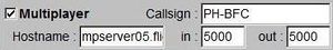 where 5000 is the port number the server is listening on (which is 5000 for the official servers). If you for some reason need to specify which local port and/or interface ProFlight should use add the following argument: --multiplay=in,10,your.ip.address,portnumber
