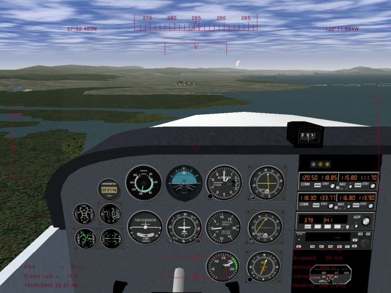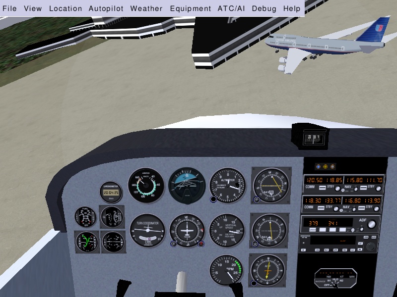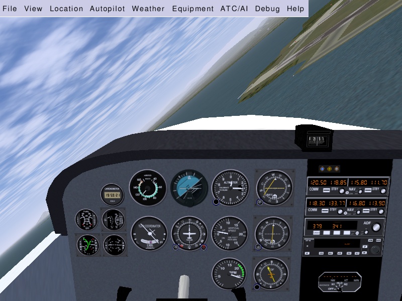 Once the game is started (Start Flying Option) you see this window content and you hear the